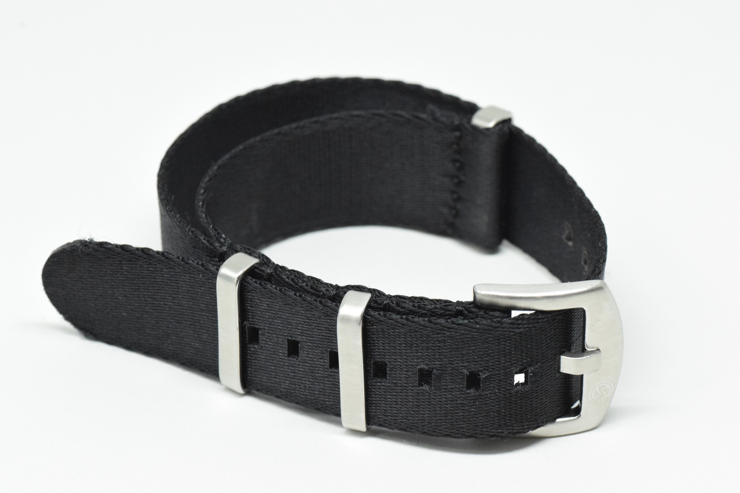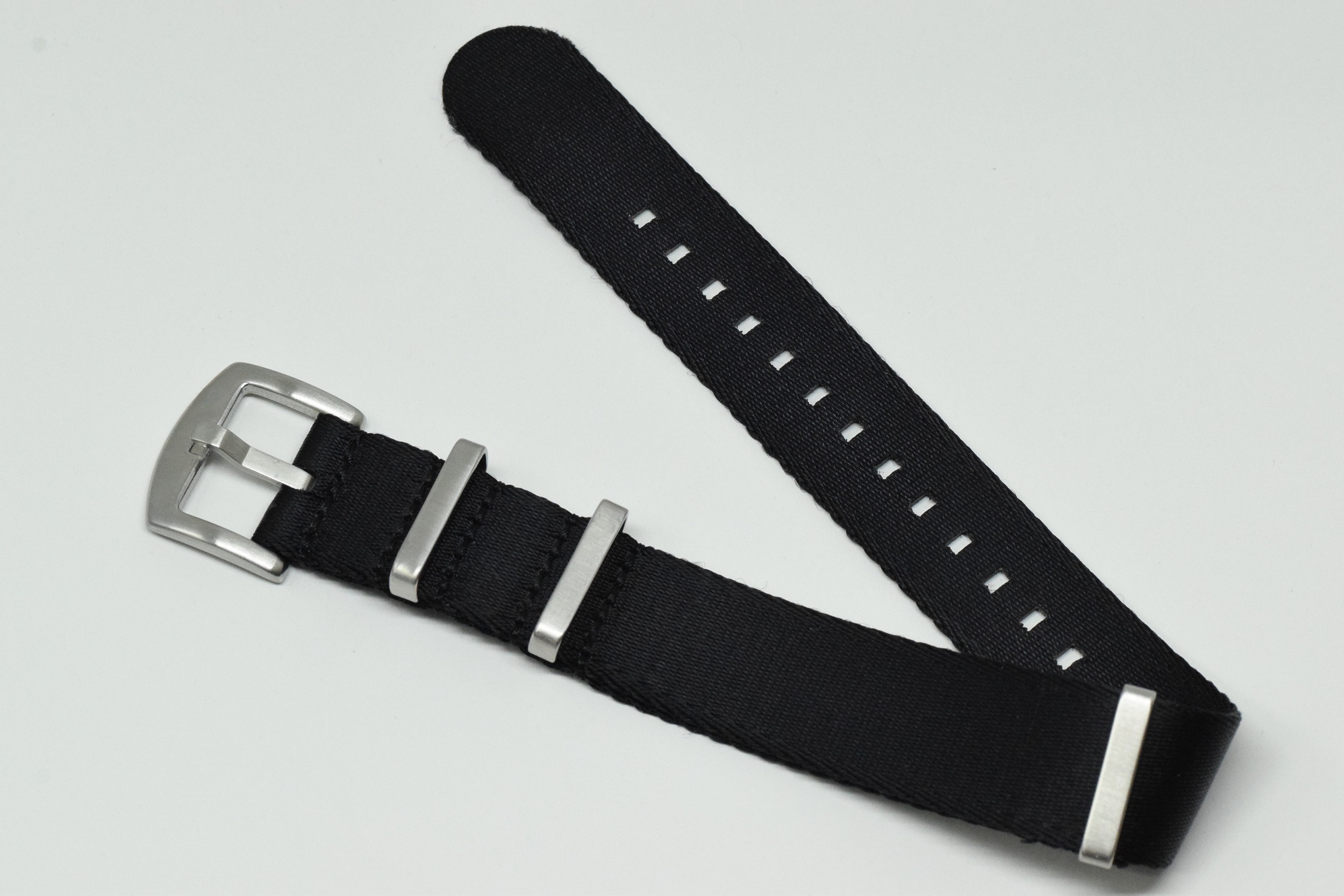 NATOストラップ(NATOタイプ)ナイロン素材のバンド。こちらは基本的に引き通しタイプなので簡単に本体からバンドを外す事ができ、お手入れがしやすいと言えるでしょう。